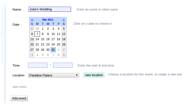 Adding a new event is quick and easy: